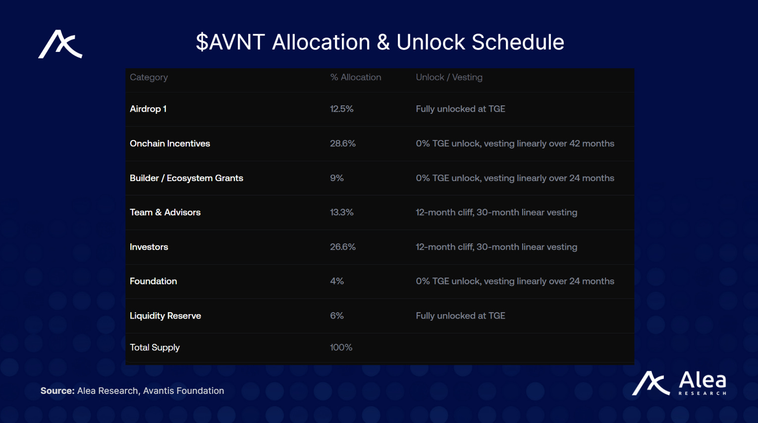 Security & Staking: Holders can stake $AVNT in the Avantis Security Module, providing a backstop for the USDC vault during extreme market moves. Stakers earn $AVNT rewards and trading fee discounts.