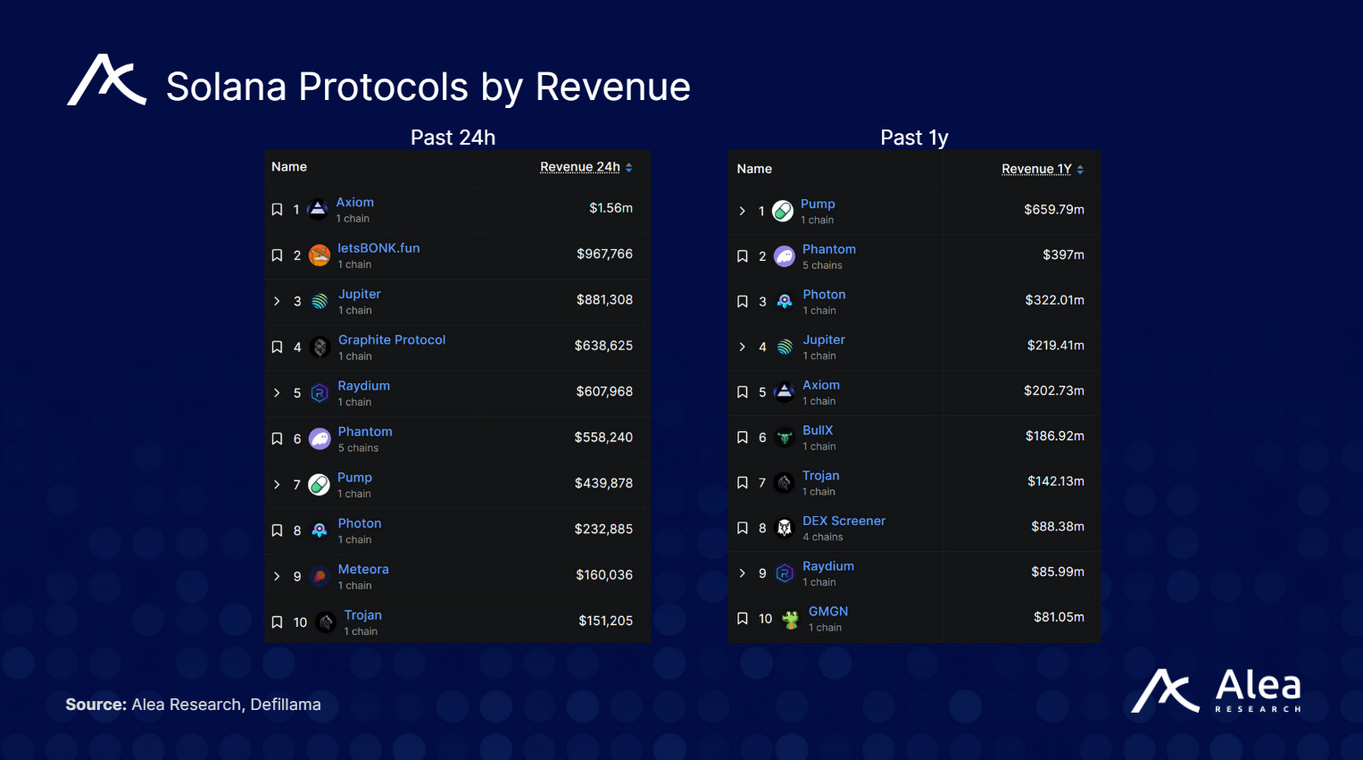Looking at Solana protocol revenues over 24h and 1y timeframes tell a clear story of the decaying edge of pumpfun over the year, and the recent rise of BonkFun. Today, BonkFun is solidifying its ground as the default launchpad on Solana, sitting at the intersection of retail speculation and a revenue machine.
