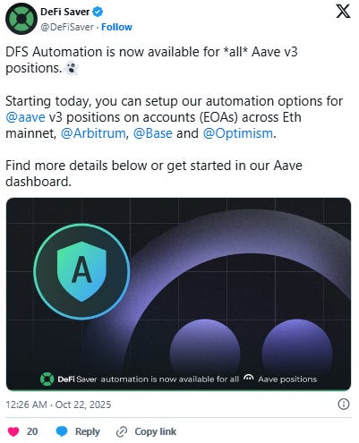 For the Aave-native users who already use multi-step strategies and think in terms of health-factor bounds or target leverage ranges for managing their position, DeFi Saver helps to remove much of the mechanical friction from executing them.