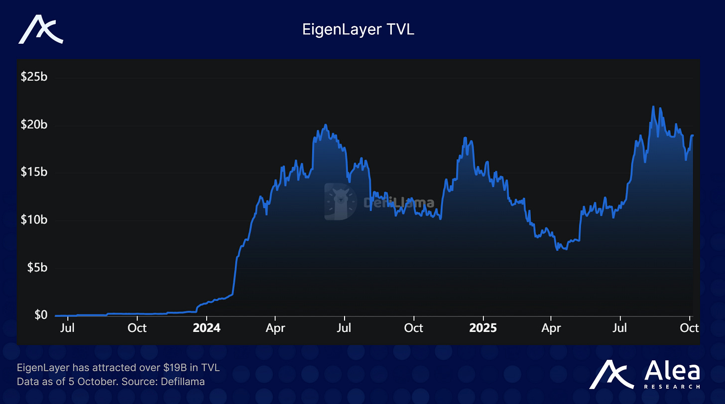 If operators misbehave, they get slashed from the restaked ETH. This model has attracted over $19 billion in TVL and dozens of AVSs in development.