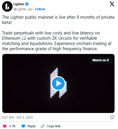 The trade-off is that markets tend to reward perp venues with the tightest spreads and deepest books, especially during volatility, so Lighter’s near-term question is whether it can attract enough market makers and sustained flow to narrow the execution-quality gap with Hyperliquid, while using its rollup architecture to appeal to users who care about a more Ethereum-rooted security posture.