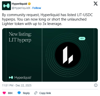 Hyperliquid has also recently listed LIT on its pre-markets.
