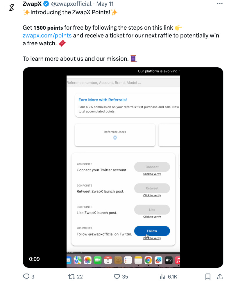 ZwapX is a relatively new project, incubated by Alliance DAO, a crypto founder network and project accelerator. ZwapX also capitalizes on the inherent inefficiencies found when buying second-hand watches online, aiming to improve on the incumbent non-crypto marketplaces like Chrono24 and Montro.