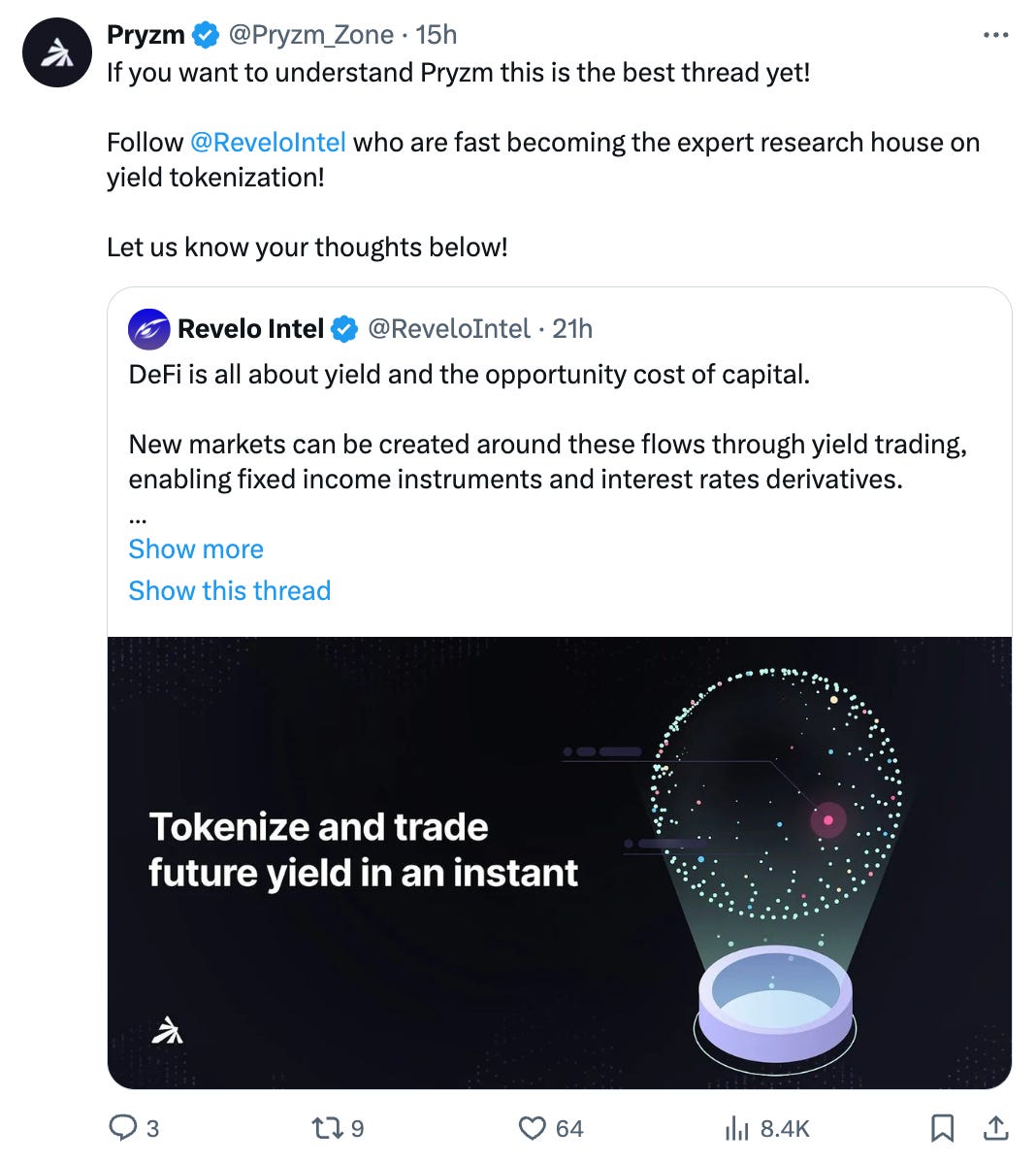 We’ve discussed fixed rates quite a bit recently. We had our Fixed Rates Revelo Roundtable last week, featuring Pendle, and other top teams in the yield trading space. With all this yield talk, we’d be remiss if we didn’t mention Pryzm…